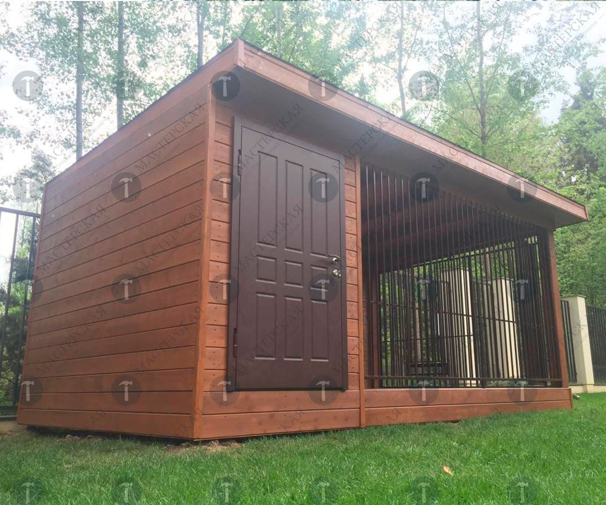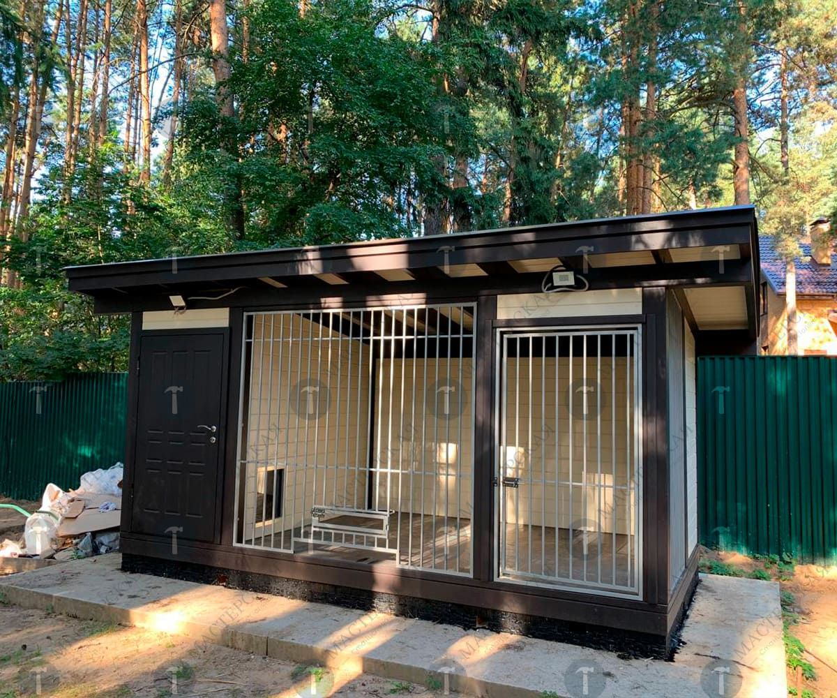Не меньше 3х4, 2х5 или 3х6 м. В идеале – с расширенной зоной выгула, чтобы собака могла двигаться по вольеру и выгулу достаточно свободно. Маленькие модели вольеров с ограниченным пространством не подойдут.