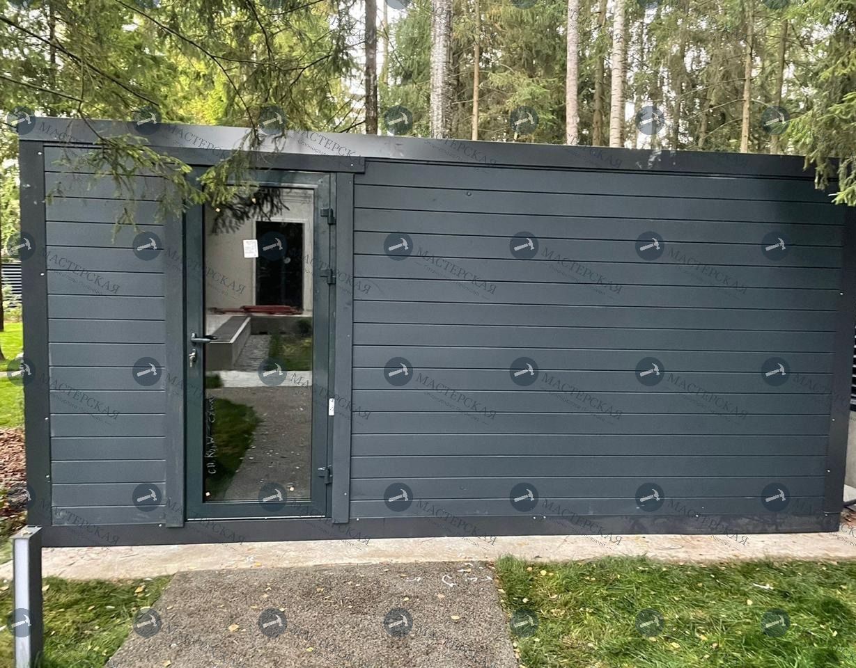 Хозблок о нашей мастерской выглядит круто. Он вписан в территорию так, что многие ваши гости будут считать «сарай» баней или летним домом. Офигенный. Даже так сразу и не скажешь, что это технологичный и современный «сарай».