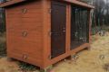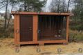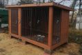 Простой деревянный вольер для собаки с теплым зимником, окном для подачи корма и решеткой, сваренной по нашей круговой технологии. В этой модели нет какого-то уникального дизайна.